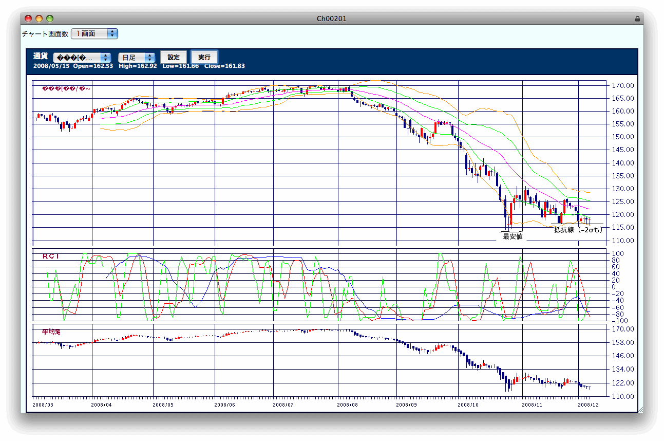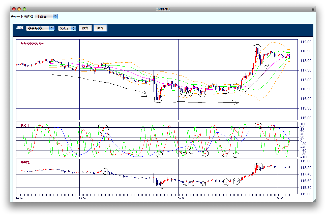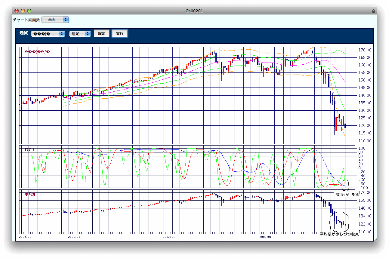 ような感じ。値動きの幅がRCIの目盛りの