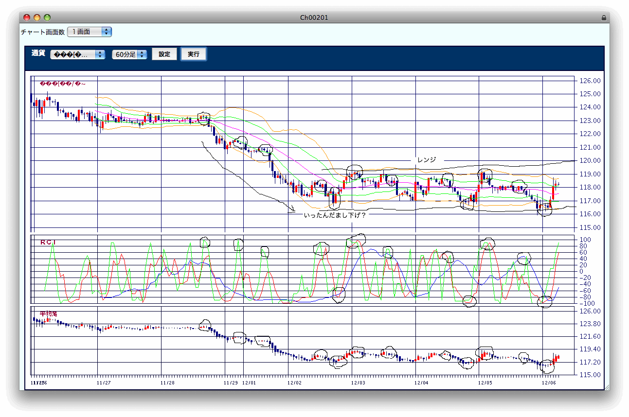 1時間足のレンジの部分を拡大した