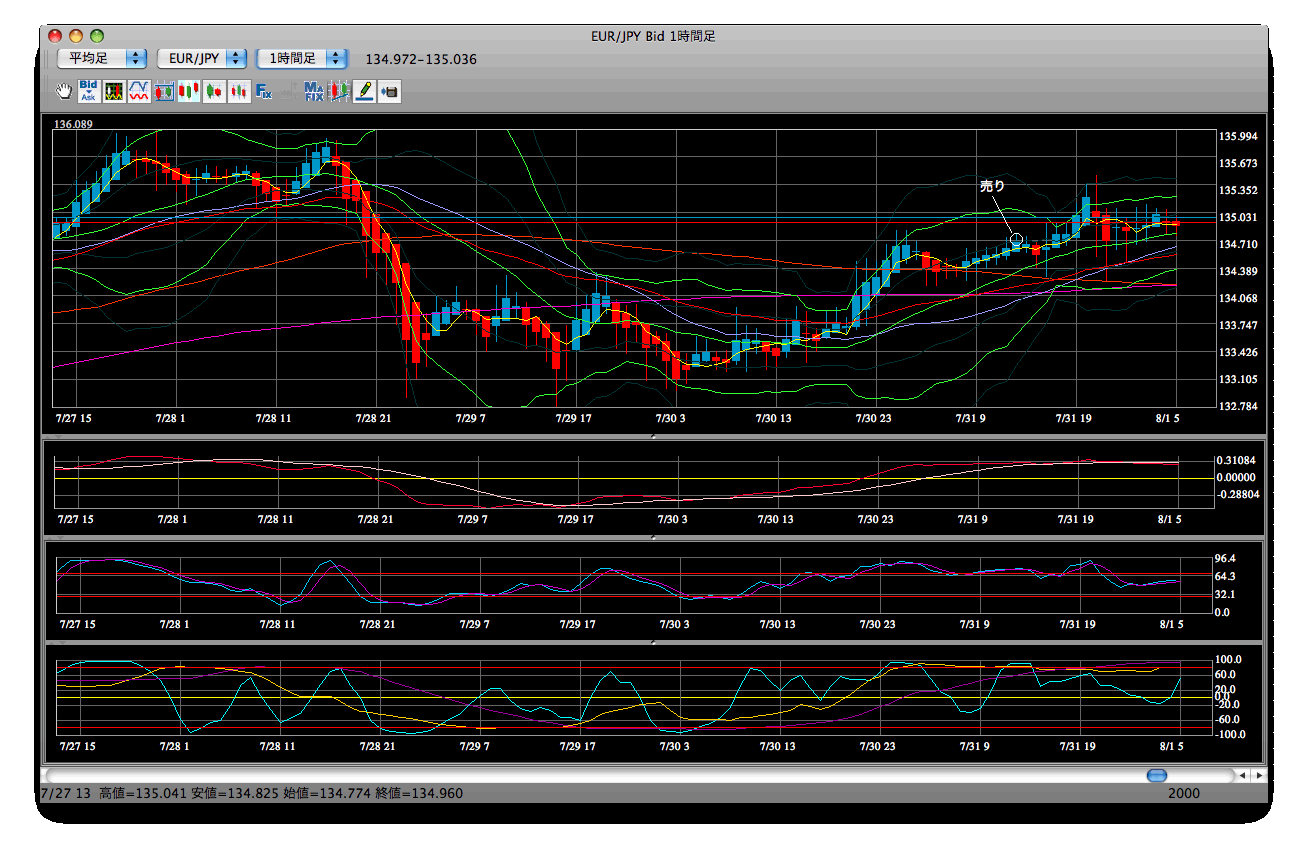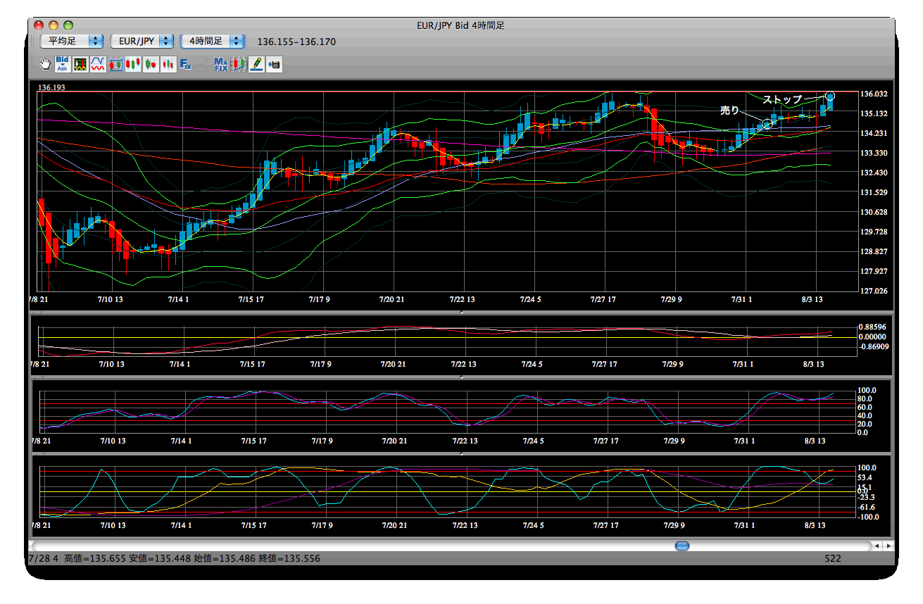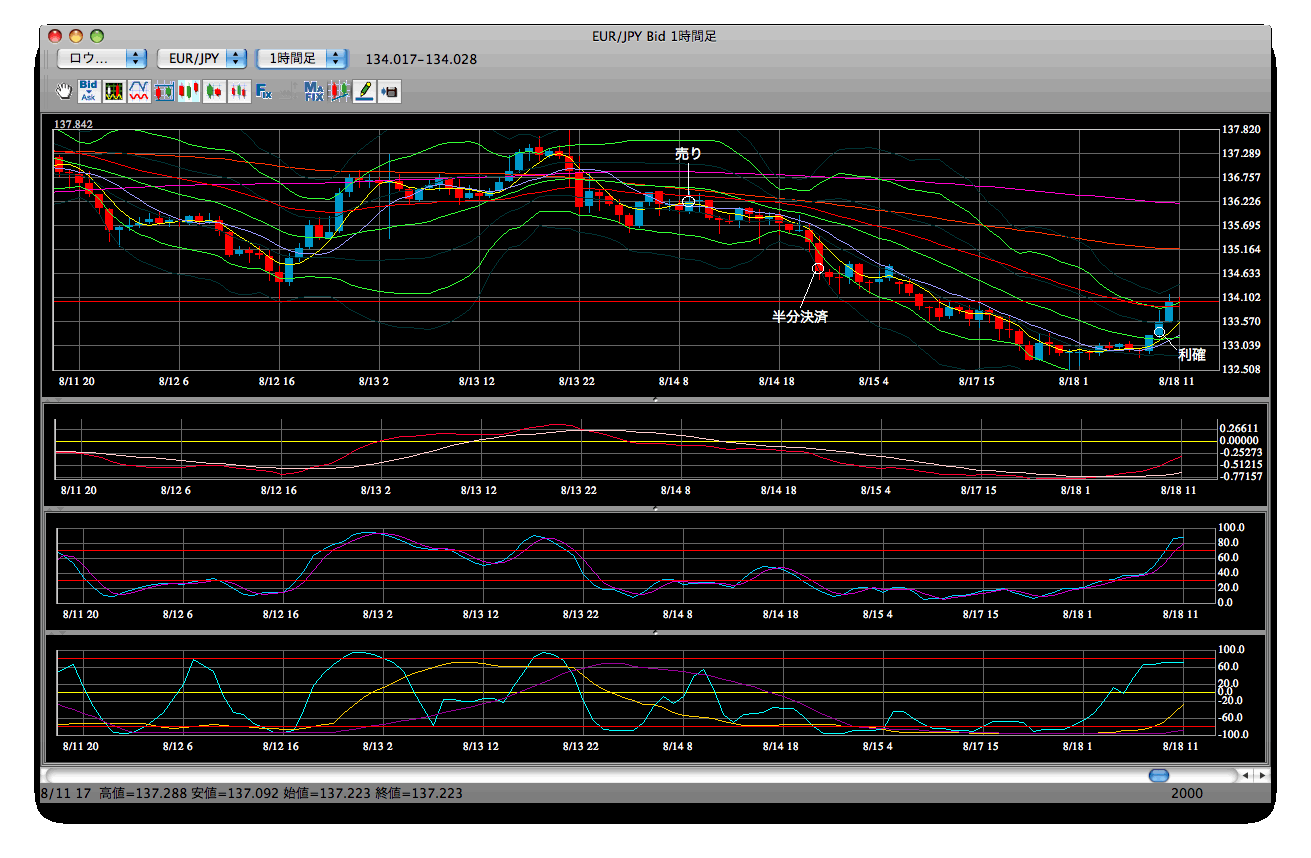 天井に着いたので、そこで売りでエントリーしました。